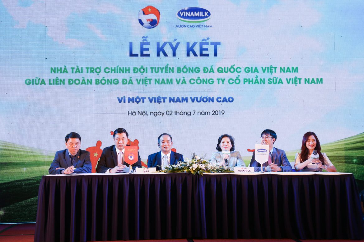 Sự kiện Vinamilk trở thành nhà tài trợ chính cho Đội tuyển bóng đá quốc gia Việt Nam, bao gồm Đội tuyển bóng đá quốc gia nam, Đội tuyển bóng đá quốc gia nữ, Đội tuyển bóng đá U22/ U23/ Olympic quốc gia.